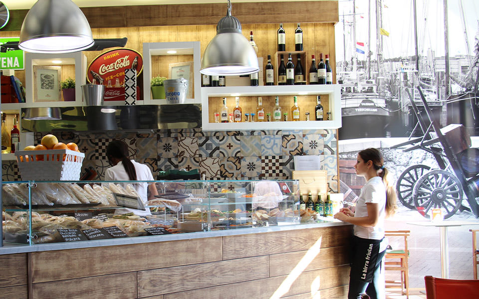 Un ambiente luminoso e moderno con ampio spazio esterno dove poter gustare prodotti freschissimi e di alta qualità in ogni occasione: da una ricca colazione con brioche di ogni tipo a un pranzo con svariate proposte e ampia scelta di dolci, fino all’aperitivo serale, con un vasto buffet a base di carne e pesce alla brace, con la formula “Mangia quanto e quel che vuoi, che al resto ci pensiamo noi!”.