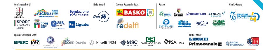 La Festa dello Sport è patrocinata da Regione Liguria, Sport e Salute, Coni e Ufficio Scolastico regionale per la Liguria, Fondazione Carige, Rai Liguria nell’ambito di Liguria 2025 Regione Europea dello Sport e Gen 26, Education Program di Milano Cortina 2026.