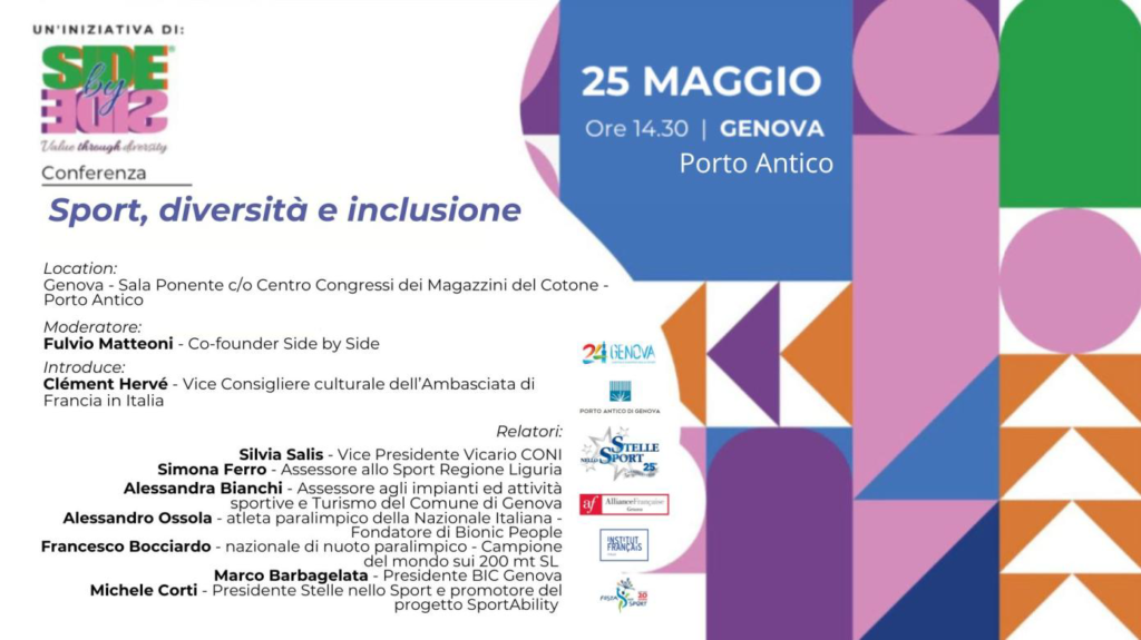 Sabato 25 alle ore 14:30 presso la Sala Ponente del Centro Congressi dei Magazzini del Cotone ci sarà l’incontro “Sport, diversità e inclusione”.